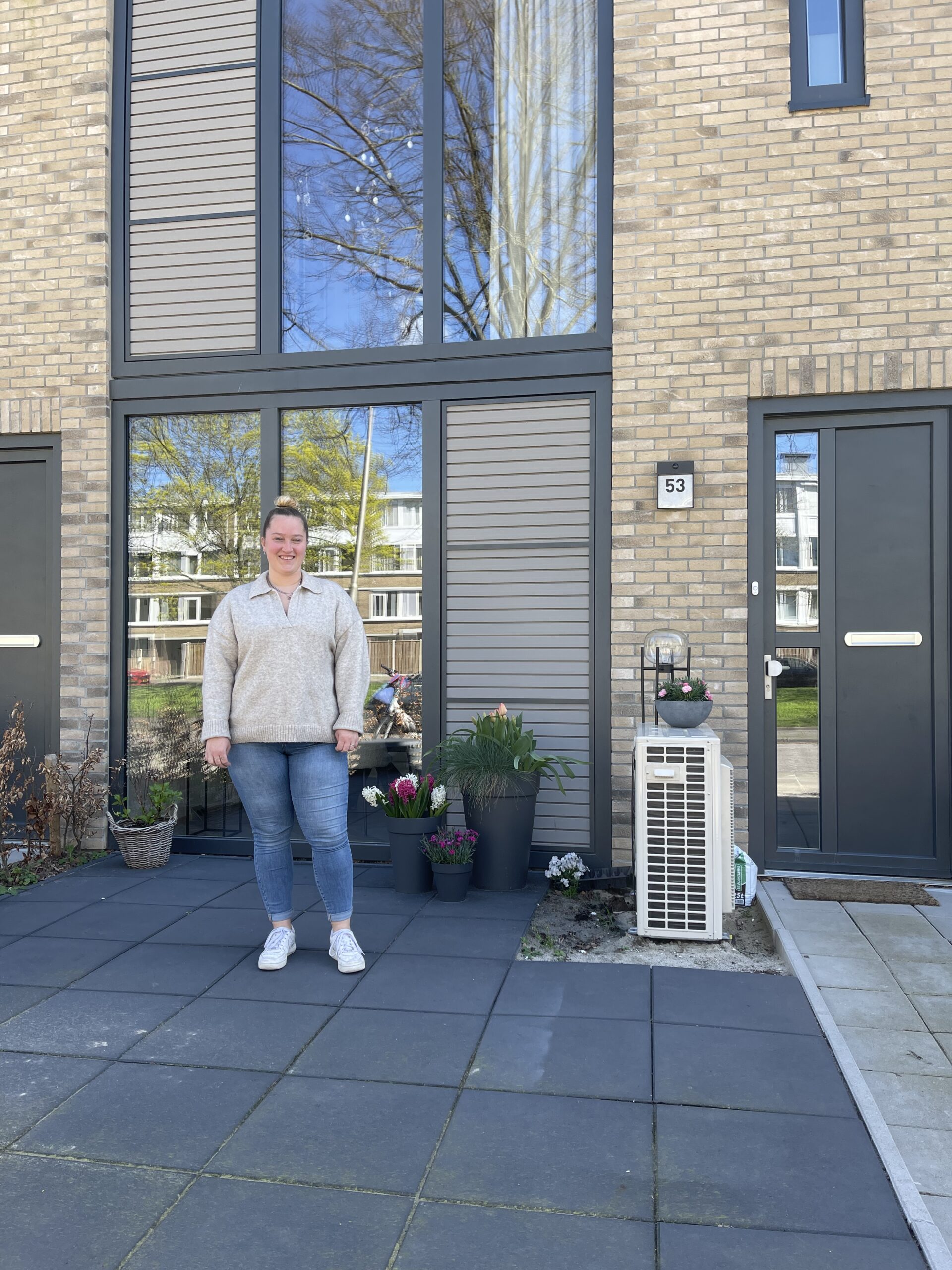 Toen op een zeker moment Jacobine van werk, via de Stadhouderslaan, naar huis fietste zag zij complete woningen van de vrachtwagen op de onlangs aangelegde fundering geplaatst worden. ‘Mijn nieuwsgierigheid was daarmee direct gewekt. Na wat onderzoek bleek het een jongerenproject (tot 27 jaar) te zijn waarvoor ik, met mijn 26 jaar, nog nèt in aanmerking kwam. Ik heb het in de gaten gehouden en mij direct ingeschreven toen de mogelijkheid er was. Met meer dan 500 inschrijvingen prijs ik mij ontzettend gelukkig met het feit dat ik mijn eigen woning heb mogen ‘krijgen.’ Want krijgen, zo voelt het dan ineens terwijl ik er gewoon hard voor moet werken.