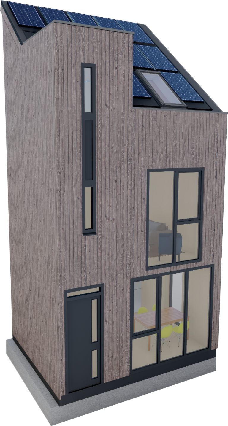 De woning is speciaal ontwikkeld voor (her)starters op de woningmarkt, geschikt voor permanente bewoning, maar ook als flexwoning. De woning is zo ingedeeld dat het maximale wooncomfort bereikt wordt op een beperkte oppervlakte. De woning beschikt over 3 woonlagen met ruimte voor een moderne leefkeuken, gezellige woonkamer, royale slaapkamer, een badkamer en een toilet. Dankzij de inzet van duurzame bouwmaterialen is de woning onderhoudsarm.